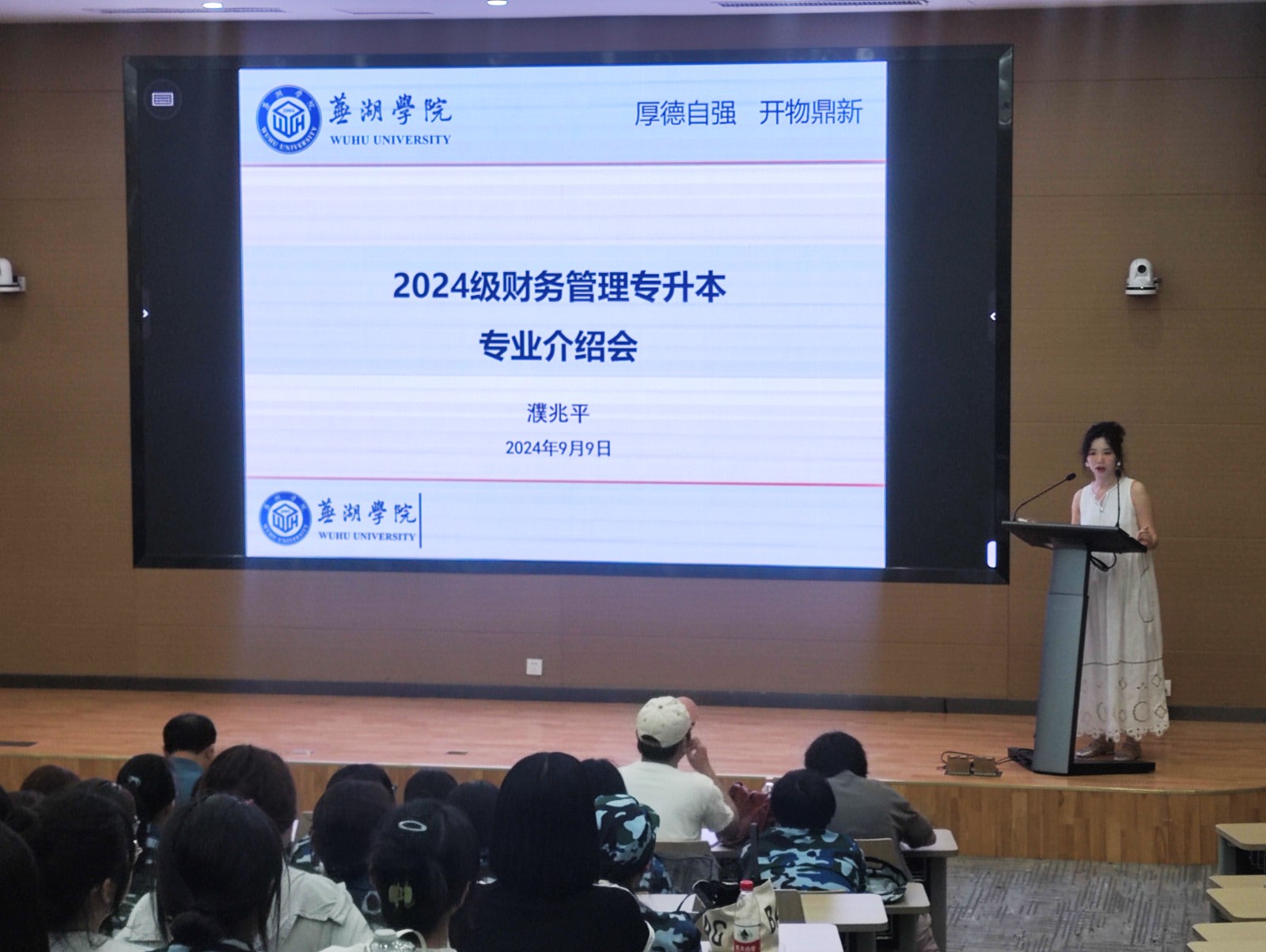 为了让2024级新生加深对所学专业的理解与认同,尽早适应大学生活、做好学习规划,经济系9月9日下午2点9号楼报告厅召开新生入学专业介绍会。参加活动的有经济系主任龚基云,副书记李运鑫,财务管理专业负责人濮兆平,会计学专业负责人张洋,新生辅导员祝松以及全体新生,活动由教学秘书祖璇主持