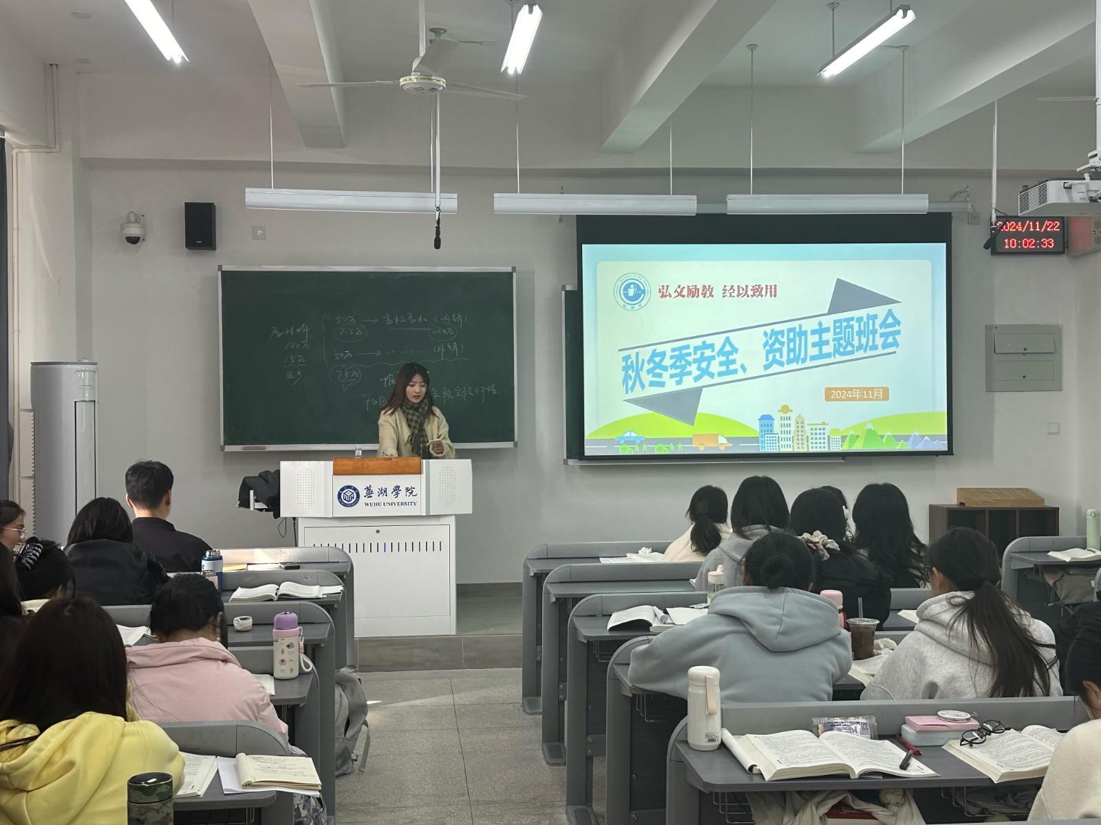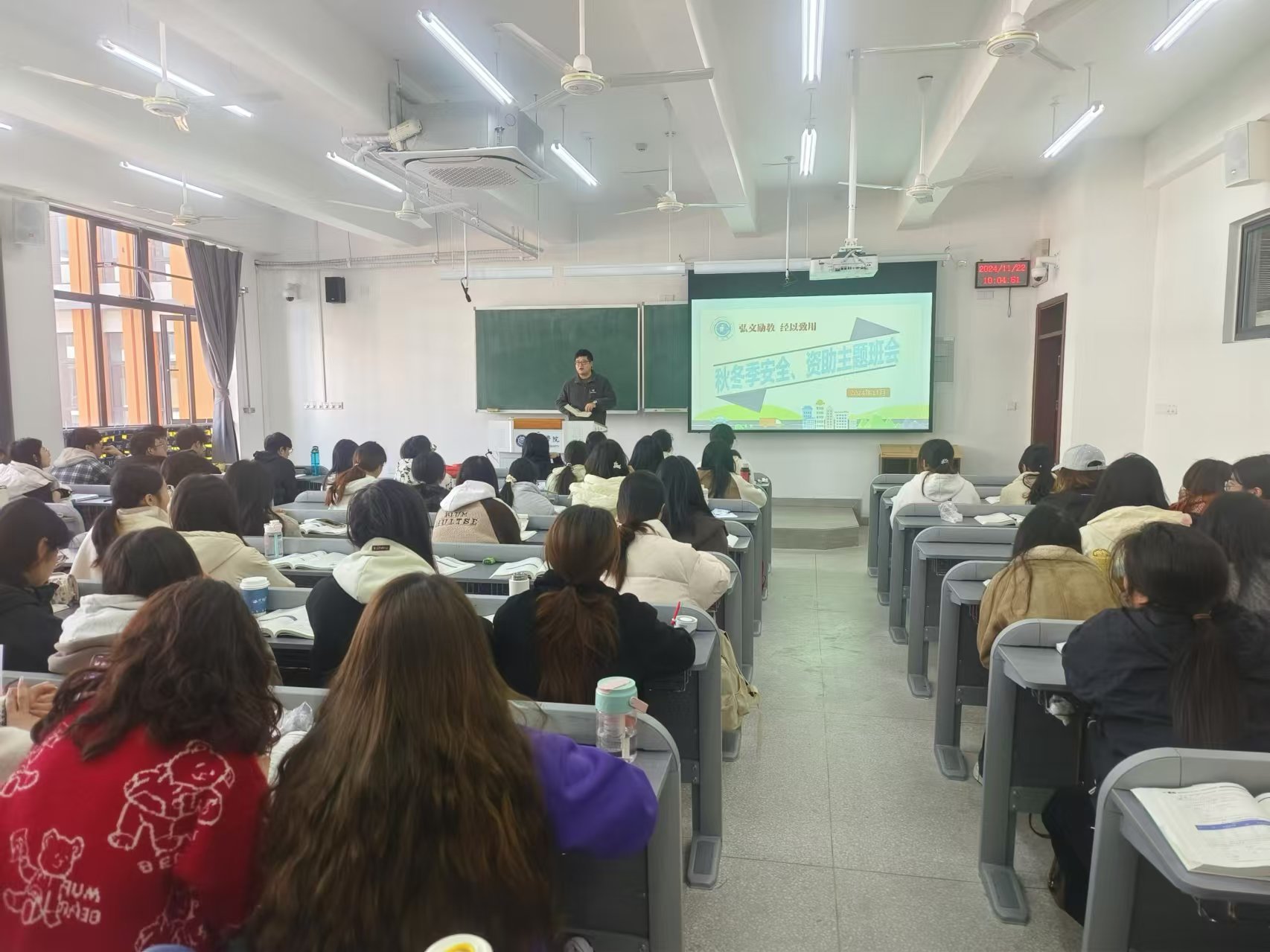 根据学生处工作会议要求,增强广大学子的冬季安全意识,预防冬季各类安全事故,加强学生自我保护;同时持续跟进资助政策宣讲。11月下旬,经济系各班级组织召开冬季安全及资助教育主题班会。