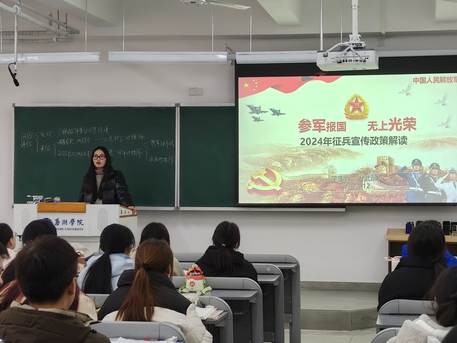 为激发大学生家国情怀,增强学生投身国防意识,增进对军队建设及征兵政策了解,引导更多青年学子投身军营、报效祖国,经济系2025届毕业班开展“参军报国 无上光荣”征兵动员会。