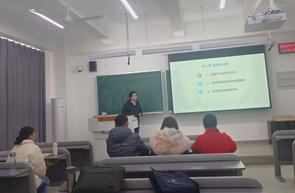 本网讯 为了帮助新入职教师顺利融入新的教学环境,展现新教师风采,并确保他们具备优秀的教学能力,管理系于12月20日在5号教学楼B307举办了新教师授课技能展示。此次活动共有两位教师参与,分别是凃丹阳和褚超。管理系主任伍旭中,主任助理李丽,市场营销专业负责人袁素红,教学秘书王海洋等,担任此次试讲评委。