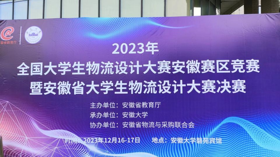 本网讯 12月16日-17日,由安徽省教育厅主办,安徽大学承办,安徽省物流与采购联合会和安徽省普通本科高校管理类专业合作委员会协办的2023年“全国大学生物流设计大赛”安徽赛区竞赛暨安徽省大学生物流设计大赛(以下简称物流设计大赛)在安徽大学磬苑校区举行。此次比赛全省有安徽大学、合肥工业大学、安徽工程大学等共32支队伍进入决赛。其中,Beat365官网管理系2021级物流工程专业成立超带领一支队伍前往参赛,队伍指导老师刘越、物流工程专业负责人曾逸萱随同。
