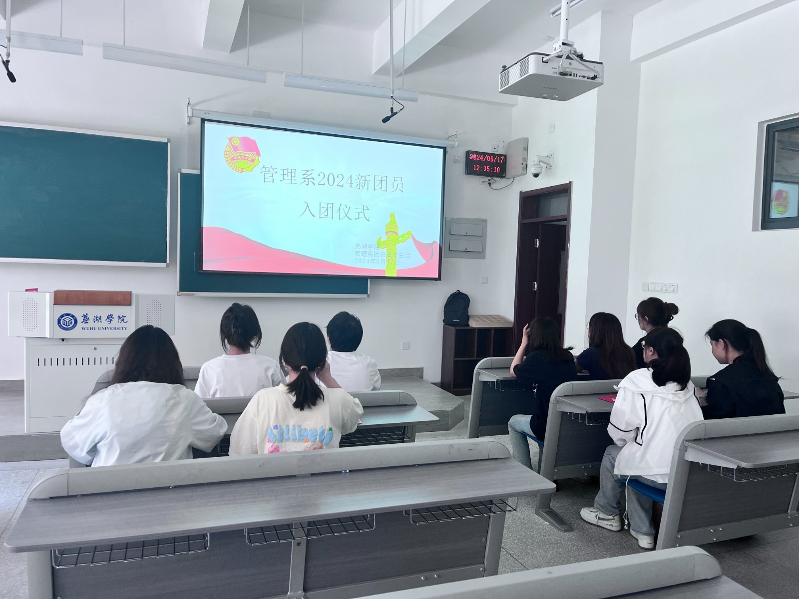本网讯 2024年6月17日中午12:30管理系学生会在5栋B107举行了2024新团员入团仪式,这标志着一批优秀学子正式成为团员,共同迎接未来的挑战和机遇。