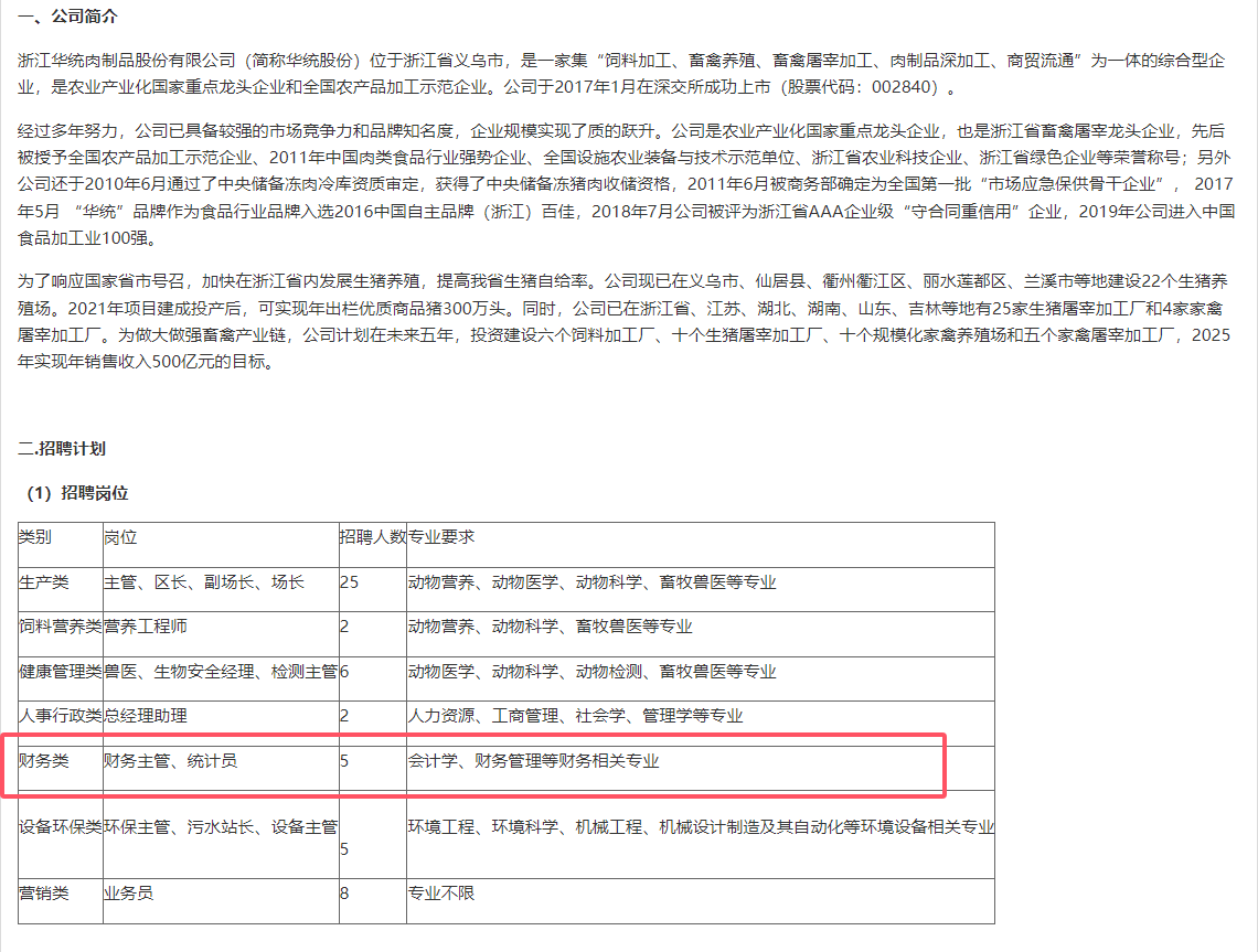 > 华统股份招聘简章