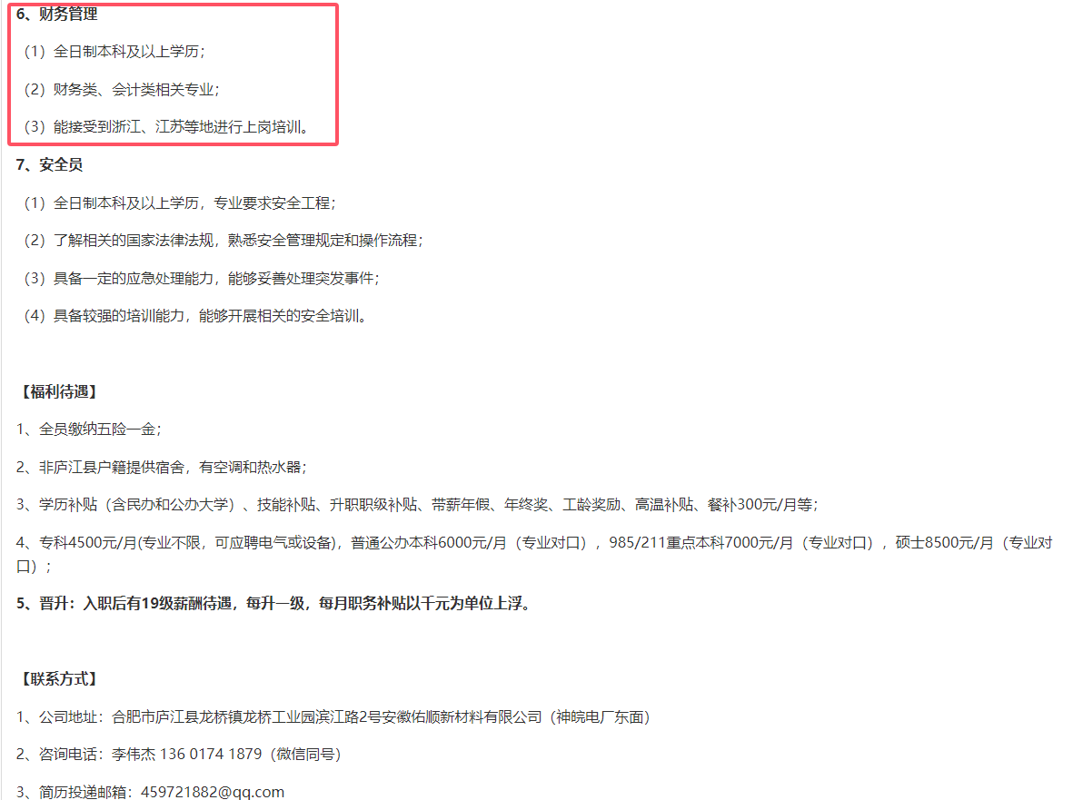 2024年安徽佑顺新材料有限公司招聘简章