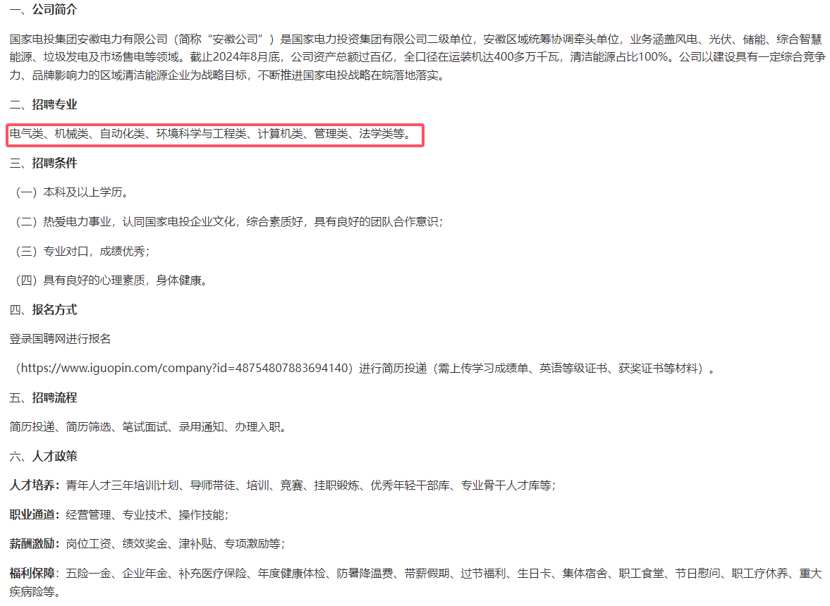国家电投集团安徽电力有限公司2025年度校园招聘公告