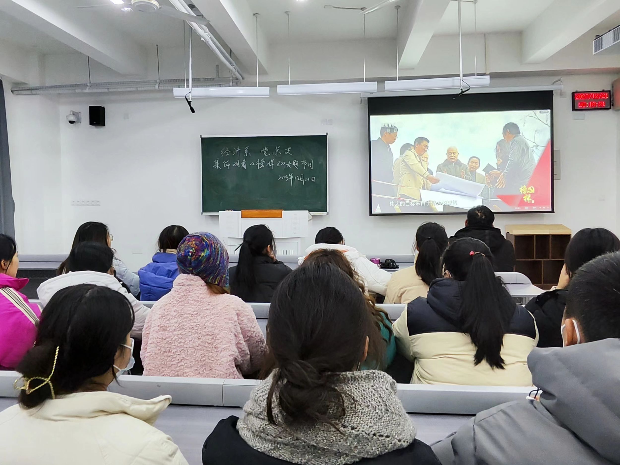 深入学习贯彻习近平新时代中国特色社会主义思想,教育引导广大师生党员学习榜样、争当先进,主动作为、担当有为。12月21日,中央组织部、中央学习贯彻习近平新时代中国特色社会主义思想主题教育领导小组办公室、中央广播电视总台联合制作的《榜样8》专题节目在中央电视台综合频道晚间8点档首播,经济系党总支组织师生党员通过集中观看等方式学习、交流。