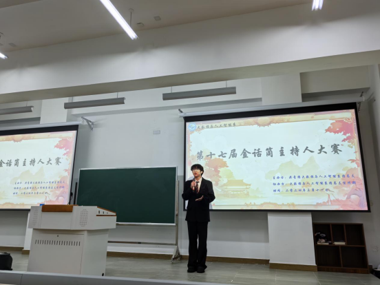 本网讯 近日,为丰富校园文化内涵,促进学生课余生活的多姿多彩,我系于3月11日晚六点半在五号教学楼A107隆重举行了第十七届金话筒主持人大赛。此次大赛特邀郭雅迪老师、刘杰老师和王轶超老师担任评委,共同见证了这场语言艺术的盛宴。