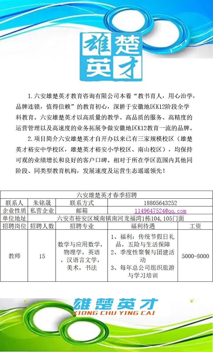 2024校园招聘会之六安雄楚英才教育咨询有限公司