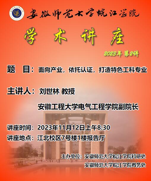 【皖江学术讲座2023学年第2讲预告】面向产业,依托认证,打造特色工科专业