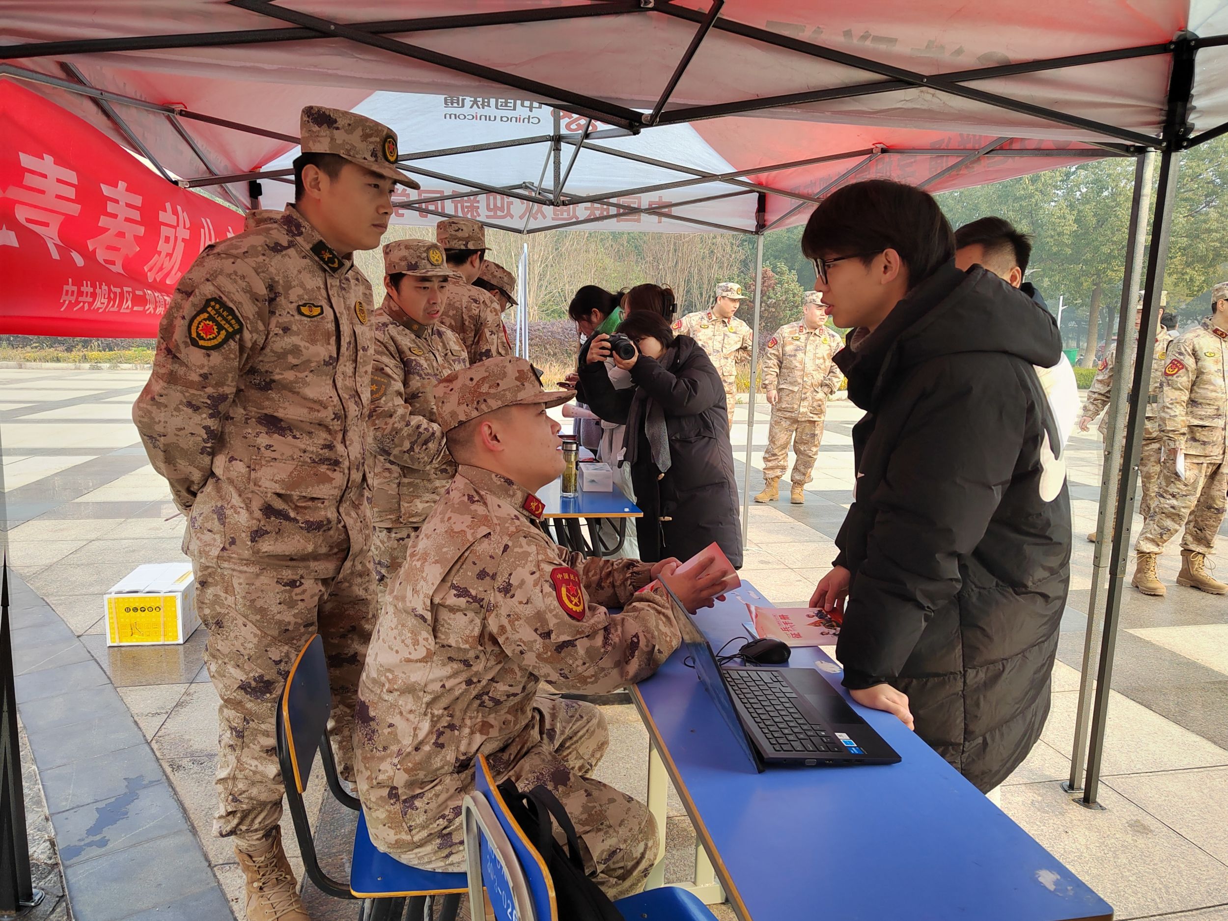 为鼓励毕业生踊跃参军入伍,积极投身国防和军队现代化建设,招聘会期间还邀请芜湖市鸠江区征兵办、二坝镇人武部进行了征兵宣传,提高大学生对征兵政策的知晓率,为咨询应征的学子答疑解惑。