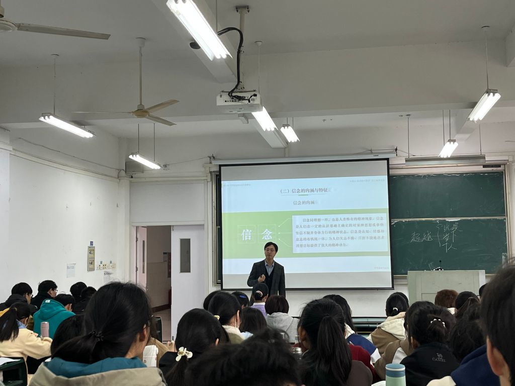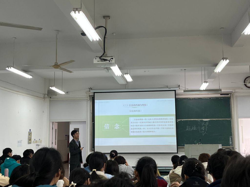 首先方宝华老师带领同学们回顾了理想的内涵定义和特征,然后开始引入信念的概念特征,最后提出问题,引导学生思考,帮助学生理解坚守理想信念的重要性。整个教学过程中,方宝华老师声音洪亮,知识点讲解清楚细致,课堂语言生动形象、富有感染力,并通过分析具体案例,与学生亲切互动,课堂气氛活跃,充分调动了学生参与课堂学习的积极性。