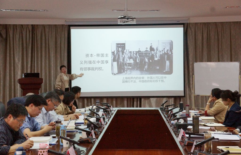 备课会上,我院思政课教师李斐斐、顾素敏、安徽师范大学张鑫等三位老师先后就《“文明使者”or“强盗化身”:近代资本——帝国主义入侵与中国社会性质的转变 》《马克思主义为什么中国化》和《抗日战争的胜利及其意义》三个教学专题进行了教学展示,并围绕教学选题、教学目标、教学内容、教学重难点、教学方法等向与会人员进行了课程设计介绍。