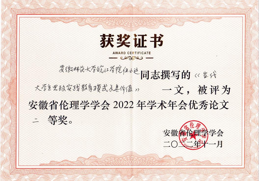 > 【喜讯】热烈祝贺伍小运老师论文获得安徽伦理学学会2022年学术年会优秀论文二等奖