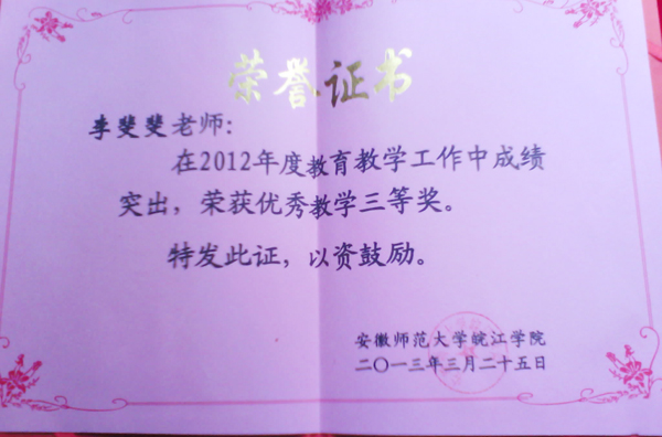 2012李斐斐优秀教学三等奖