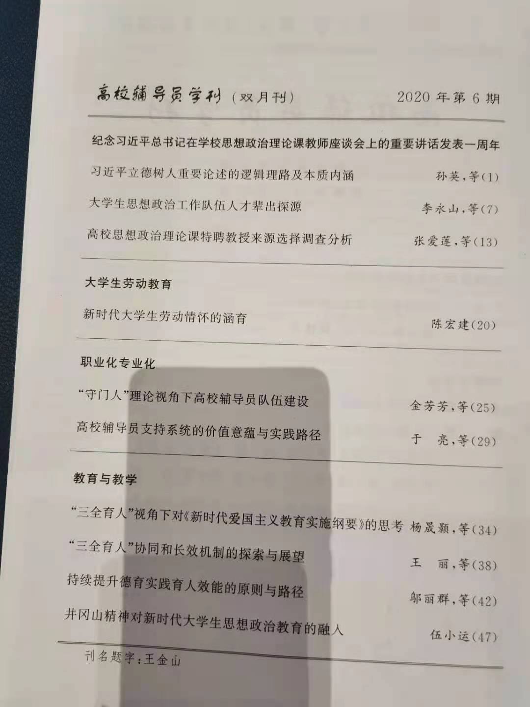 祝贺我部伍小运老师论文作品《井冈山精神对新时代大学生思想政治教育的融入》于《高校辅导员学刊》2020年第6期发表!