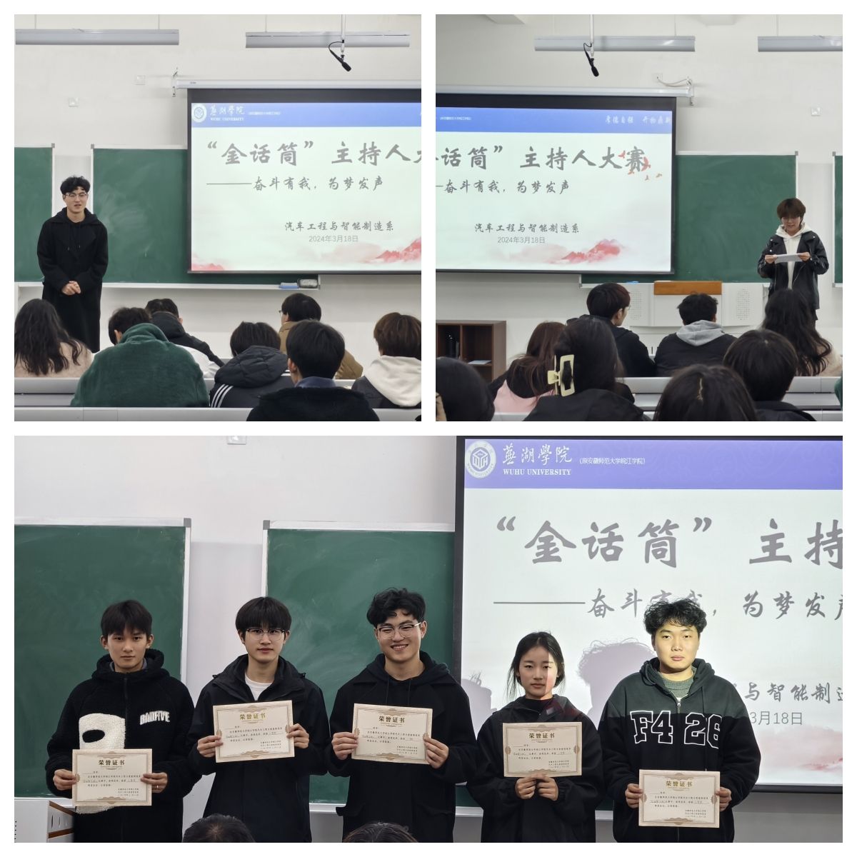 本网讯 为活跃校园文化生活,帮助同学们培养口才、思维、应变能力,汽车工程与智能制造系团总支于3月18日成功开展了第一届“金话筒”主持人大赛。