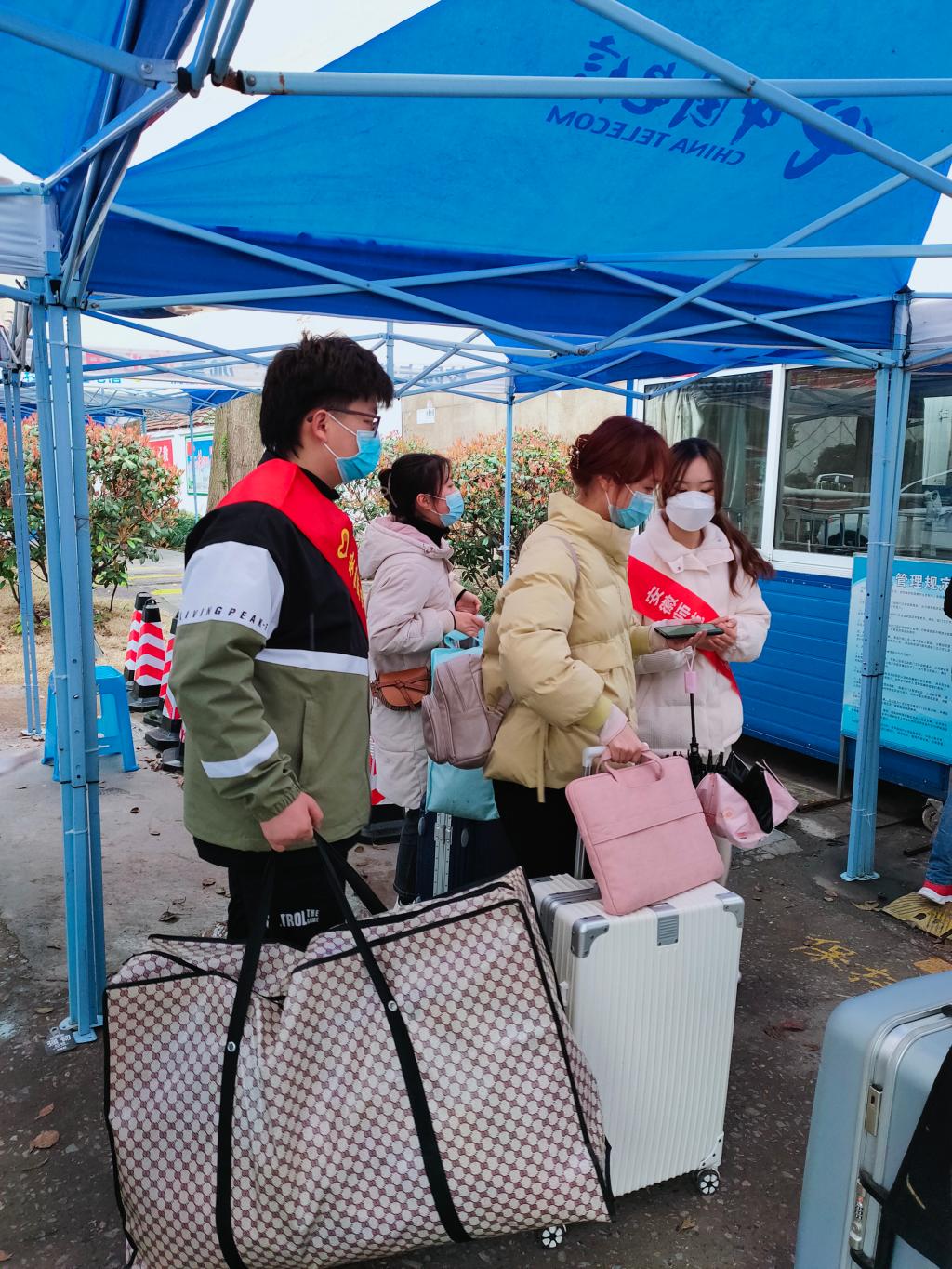 记者在现场看到,在场的志愿者或为学生搬运行李、或引导学生有序乘车、或进行文明引导,激情饱满,不知疲倦,主动担当,用满腔的热血和温暖的笑颜迎接一批批从各地返校的同学。返校当日,阴雨绵绵,寒风瑟瑟,但恶劣天气并没有阻碍志愿者们的热情。他们迎着风雨,不顾天冷路滑,以亲切引导和热情服务为学生返校暖心护航。为皖江学子的顺利返校提供了强有力的协助。随着返校学生干部的增多,越来越多的人加入到志愿服务队伍中来。看着志愿者们撑着伞在雨中为同学们运送行李的身影,同学们纷纷对志愿者们竖起大拇指,对他们的服务精神“点赞”。