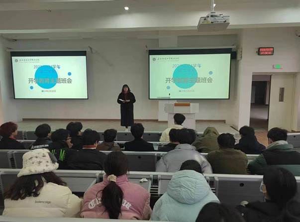启航新征程,逐梦青春路。本学期首次班会的顺利召开,不仅有效增强了同学们的自我保护意识,提高了安全防护能力,助推优良学风的营造、建设,更有利于同学以饱满的精神状态、踔厉奋发的奋斗姿态投身于未来学习生活。