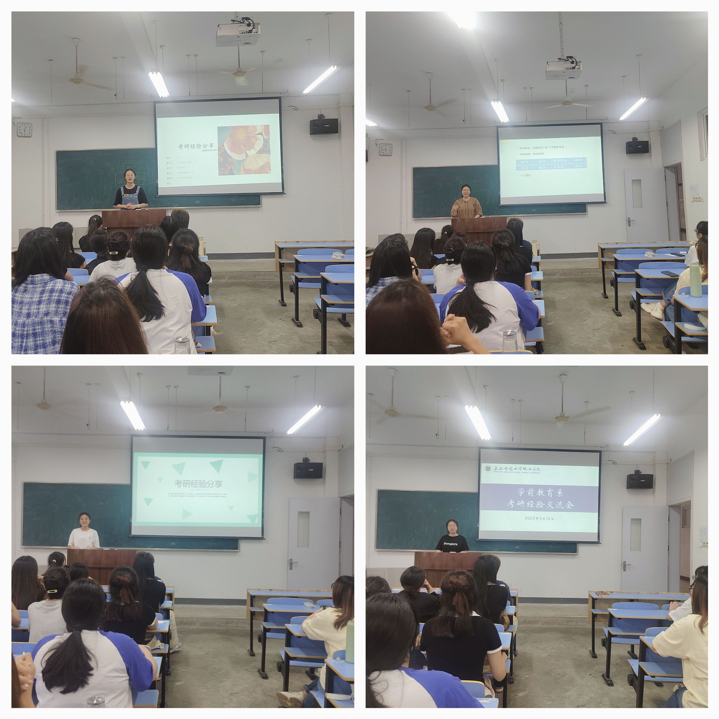 为了帮助考研学子明确学习方向、提高学习效率,2023年5月16日,学前教育系在西三303教室召开考研经验交流会。会议由学前教育系副主任刘雅莉主持,教学秘书刘群、辅导员李璐和马珺、2019级学前教育专业考研拟录取学生代表、2020级学前教育专业和2022级学前教育专业(专升本)有考研意向的学生参加了本次交流会。