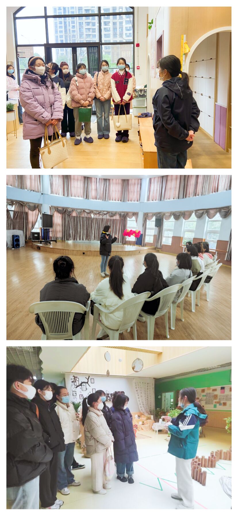 上午九时许,余下实习生在指导教师李璐、马珺和刘雅莉的带领下,分别前往了芜湖市才玲教育集团关联的三所幼儿园。三所幼儿园的园长对师生的到来表示欢迎,并介绍了幼儿园为实习生提供的生活与安全保障和园所的相关管理规定。指导教师代表全系对实习园所的安排表示感谢,对学生未来的实习工作提出期许。