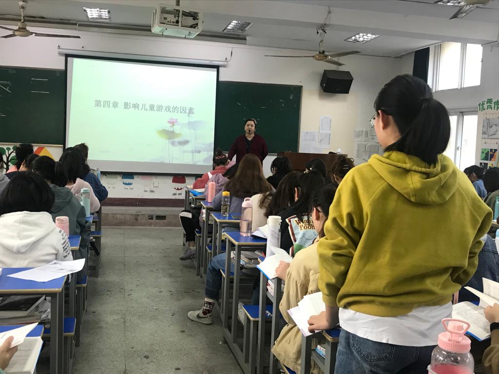 10月28日,由学前教育系系青年教师范显芬主讲的课堂教学公开课《幼儿游戏理论》在主教学楼205教室开讲。本次公开课授课内容为“幼儿游戏的影响因素”,授课对象为2017级学前教育专业学生。学前教育系全体教师参与观摩与学习。