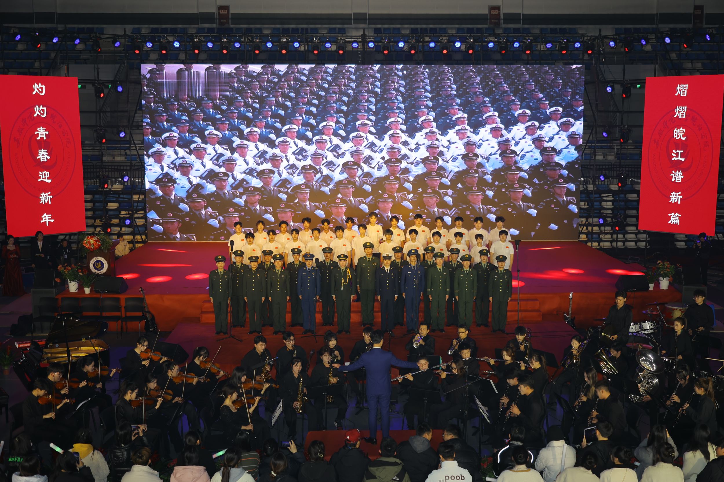 灼灼青春迎新年,熠熠皖江谱新篇。12月27日晚,学院在江北校区体育馆举办“迎新年•迎新生”文艺晚会,欢声笑语,载歌载舞,皖江师生齐心协力,一同打造了这场丰富多彩的视听盛会。院领导,芜湖市转设办领导,各系部负责人与到场的2300名师生代表欢聚一堂,共享精彩时刻。