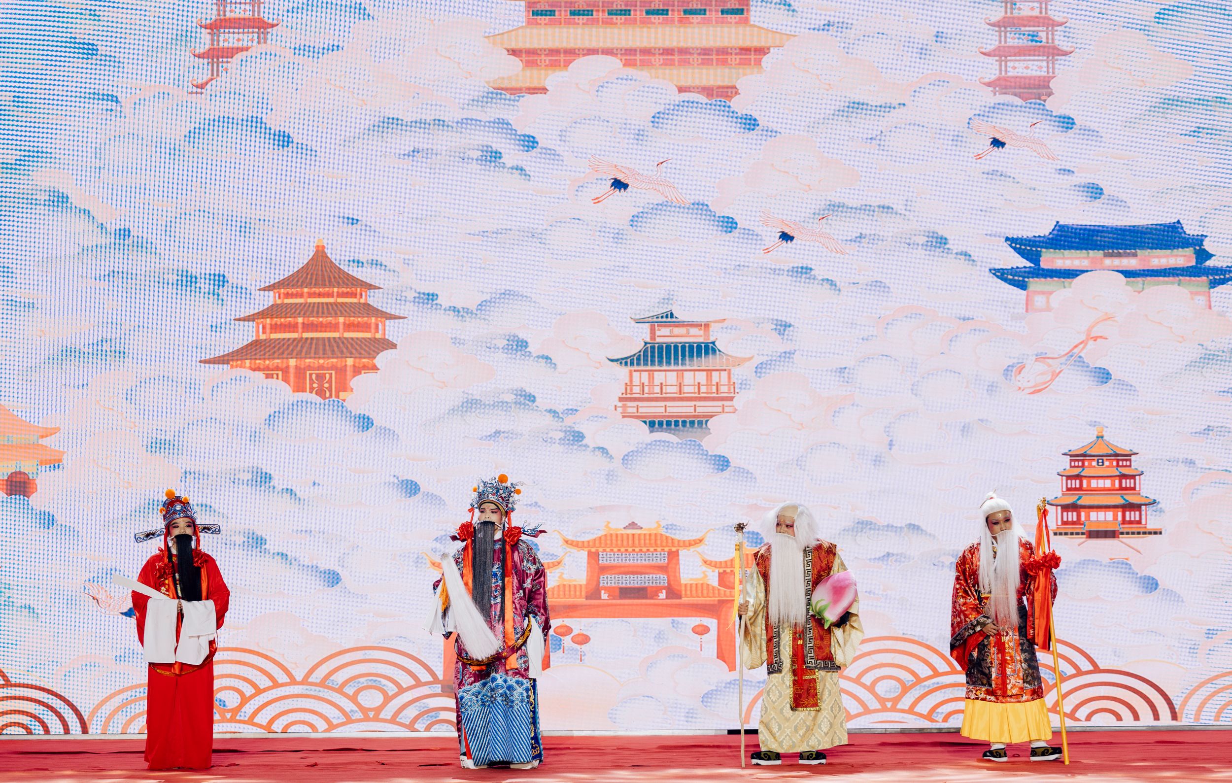 绚烂的青春在舞台绽放,自强的种子在江北播撒。第三篇章自此而始。莲灯盏盏亮起,舞者踏节而来。舞蹈《远古的呼唤》舞出丝绸之路上遥远的呐喊,在新年之时送上最美的祝福。除此之外,辅导员们与街舞社合作带来节目《一起向未来》也传递着手牵手、心连心,师生携手同行,共迎未来挑战的美好寓意。管理系、大数据与人工智能系与戏曲社携手打造的戏曲小品《福禄寿喜贺新年》掀起了晚会又一高潮,声情并茂的唱腔,幽默写实的内容引发全场欢笑,台上台下气氛融洽,反响不断。忆往昔,岁月峥嵘;看今朝,海晏河清。生在幸福时代当不忘来时之路,大学生艺术团合唱团以一首《追寻》唱出滚烫炽热的赤子之心,唱出追寻千年不变的信仰。不忘初心,牢记使命。晚会尾声在全场齐唱《歌唱祖国》中落下帷幕。歌声荡气回肠,响亮会场,激励着皖江人砥砺深耕,笃行致远,为建设美好皖江和实现中华民族伟大复兴的中国梦而奋进。