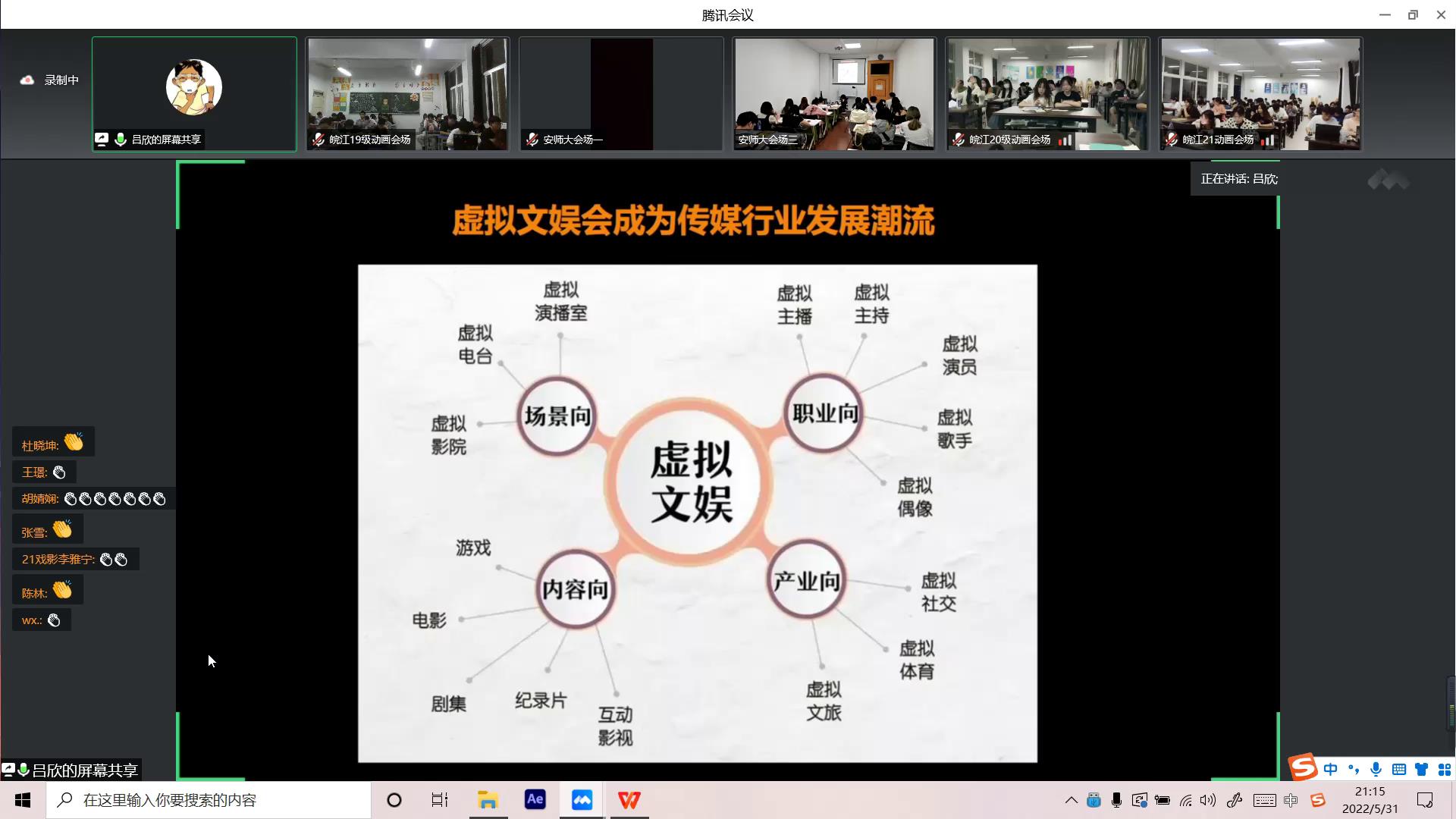 5月31日,中国传媒大学动画与数字艺术学院教授、博士生导师吕欣教授受邀通过线上直播形式为我系师生开展了主题为“元宇宙的兴起与互联网的再次进化”的专题讲座。此次讲座由视觉艺术系党总支书记孙亮教授担任主持,我系全体教师、动画专业学生聆听讲座。