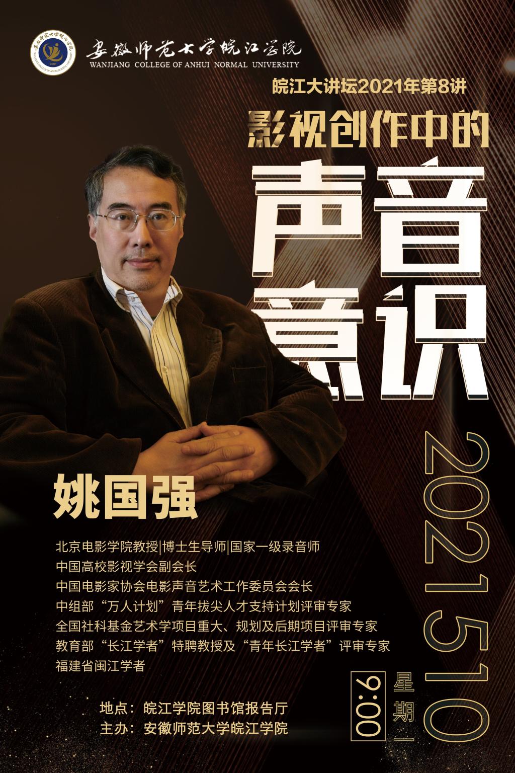 皖江大讲坛2021年第8讲预告--姚国强教授《影视创作中的声音意识》