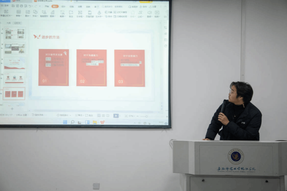 最后,系团总支书记夏东老师对此次工作汇报做出总结,他表示,开学之后,各部门的工作都有序进行,比如成功举办了第十三届“敞开心扉,演绎心情”心理剧大赛、“我要上双迎”系内选拔比赛、开展“宪法宣传周”系列活动、举行“学风建设”辩论赛等活动,这离不开我们学生会所有成员的努力。通过举办活动,也使学生会的成员在领导力、组织力、执行力方面都得到了很大的提升。在感到欣慰的同时也对今后的工作提出建议:一是要有责任意识、敢担当;二是要团结一致,一个人的力量是渺小的,众人的力量是无穷的;三是要找创意,在开展工作时,发挥创新精神,提高同学们参与活动的积极性。最后,夏东老师表示,各部门之间也要加强合作,互帮互助,让学生会成为一个既有能力,又有爱的组织。