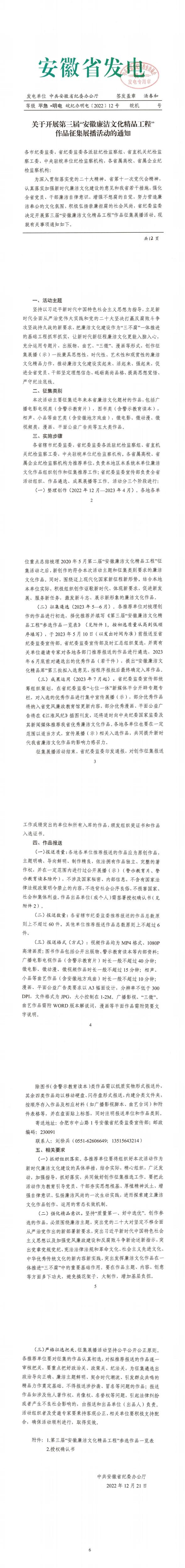 > 关于组织参加第三届 “安徽廉洁文化精品工程”作品征集展播活动的通知