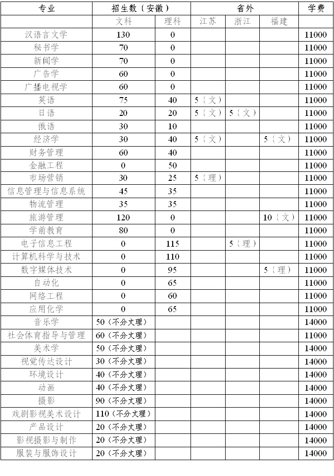 2014年分省分专业招生计划及学费标准
